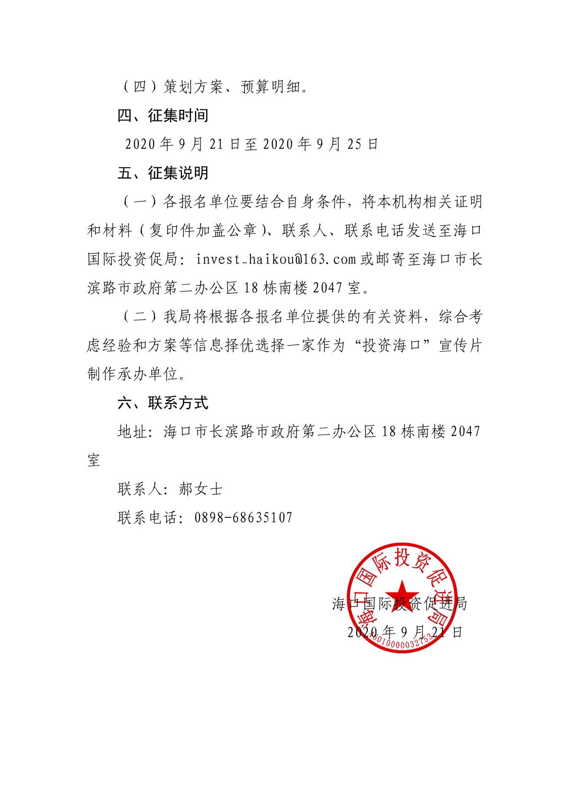 上一篇:海口國際投資促進局關于公開征集海口招商項目管理系統服務商的公告