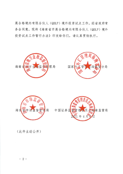 海南省開展合格境內有限合伙人(QDLP)