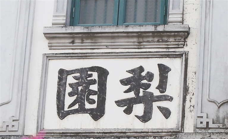中山路上騎樓建筑數(shù)量眾多,臨街商鋪林立。民國時期,這一帶是我國最南端的重要通商口岸。這里除了商鋪,街上還有郵局、銀行、酒店、戲院、公司、會館等,是一個比較成熟的商業(yè)區(qū)。“中央銀行”“交通銀行”“中南行”“平安銀行”“梨園”“五邑會館”“五峰莊”等牌匾就是歷史的見證。幾家銀行都是楷書題匾,端正規(guī)整。“梨園”是用石灰塑成的牌匾,白墻黑字,特別醒目。二字筆力沉雄,結(jié)構(gòu)穩(wěn)健,是顏真卿書法風(fēng)格。“五邑會館”是在石灰墻面上陽刻而成,也是顏體楷書風(fēng)格,結(jié)字勻稱大方,字里行間見英風(fēng)豪氣,穩(wěn)健之中見灑脫。“五峰莊”三字是楷書灰塑,用筆厚重,以中鋒為主,圓潤遒麗,結(jié)體落落大方,自帶一股風(fēng)雅氣息。