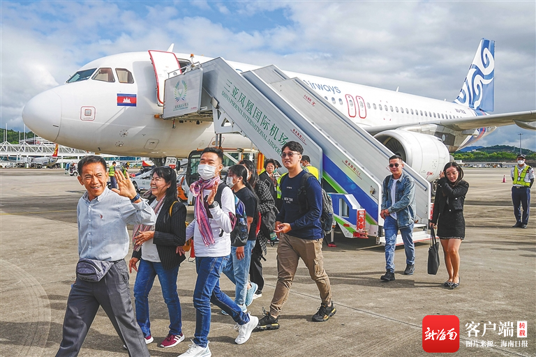 2023年12月1日上午9時(shí)許,自柬埔寨金邊起飛,由柬埔寨航空有限公司(Cambodia Airways)執(zhí)飛的KR9755航班飛抵三亞鳳凰國(guó)際機(jī)場(chǎng)。圖為來(lái)自柬埔寨金邊的旅客走下客機(jī)。海南日?qǐng)?bào)記者 王程龍 攝
